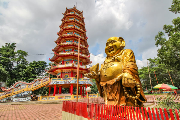 Pulau Kemaro. Pulau Kemaro terletak di tengah Sungai Musi, yang terbentuk dari proses alam dari tanah dan lumpur yang terkumpul di muara sungai dan membentuk pulau. Pulau Kemaro memiliki situs sejarah seperti Pagoda berlantai 9, Klenteng Hok Tjing Rio, Klenteng, pohon cinta, dan makam penunggu pulau. Waktu paling bagus saat berkunjung adalah saat perayaan Cap Go Meh atau 15 hari pasca tahun baru imlek, karena digelar sejumlah kegiatan untuk memeriahkan Cap Go meh seperti Barongsai, Drama, Wayang Potehi, pertunjukan musik, sampai wisata kuliner.